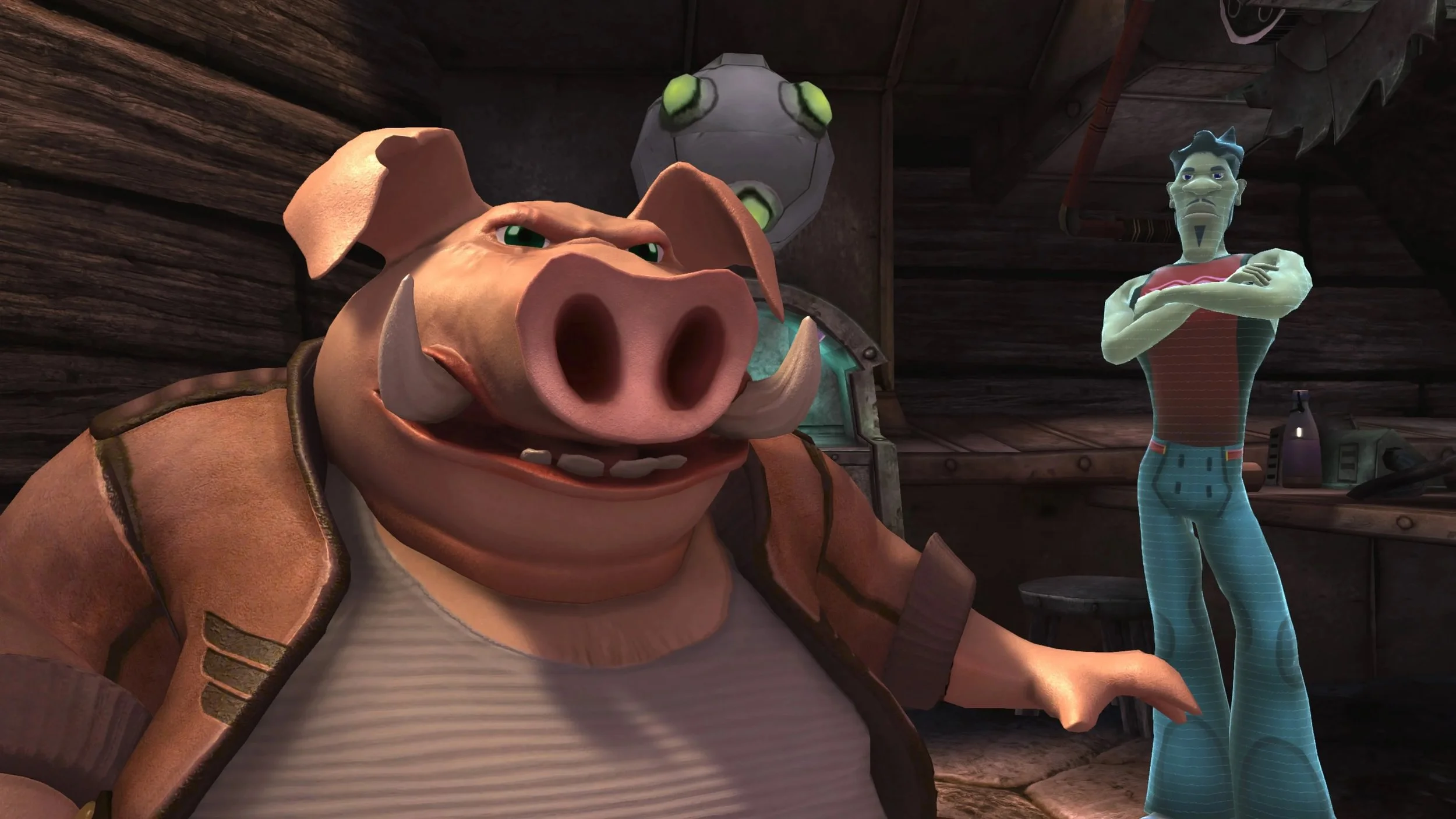 Cette édition qui fête le vingtième anniversaire de Beyond Good & Evil fait pas mal d'efforts pour transposer les graphismes du jeu à notre époque. Bien entendu, tout est loin d'être parfait, mais on peut dire sans avoir le moindre remord qu'il s'agit de la plus belle version existante du jeu d'Ubisoft. On dénote un tas de textures qui ont été refaites, des éclairages qui ne proviennent pas de 2003 et de nouveaux modèles de personnages pour l'occasion. Dans l'ensemble, tout fonctionne bien, même si pour un ou deux personnages l'opération esthétique n'est pas des plus réussies. Heureusement, Jade et son oncle s'en sortent parfaitement bien. On a le droit à une image en 4K et à de 60 images par seconde sur Playstation 5. Le travail qui a été fait sur cette nouvelle version du jeu est donc très honnête et, de manière générale, ne dénature pas l'esprit de l’œuvre originale, ce que, bien évidemment, on salue.