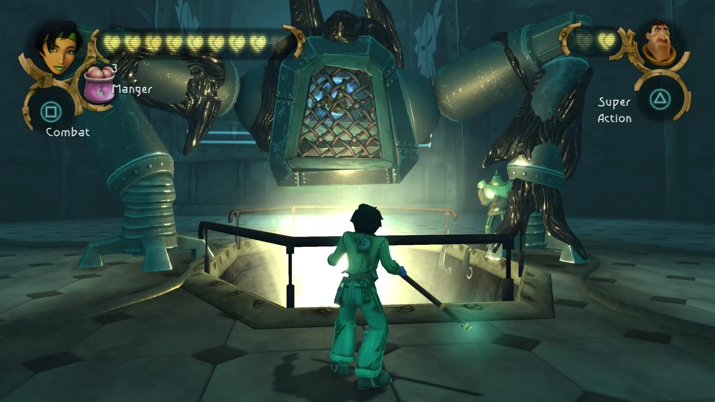 Court, mais varié et intense, c'est ce que l'on retient le plus facilement de Beyond Good & Evil. On se demande pourquoi Ubisoft s'en tête à faire du deuxième opus un titre énorme qui semble plus mettre le studio dans la boue qu'autre chose. Beyond Good & Evil c'est un peu d'action avec un système de combat assez simple basé sur une touche et les directions, un peu de plateforme, un chouilla d'infiltration, de l'exploration, de la conduite de véhicule armé, des donjons, un appareil photo et dans les grandes lignes, on a fait le tour. Le plus gros soucis d'époque répond malheureusement toujours présent, et c'est la caméra imparfaite qui part un peu en cacahuète quand on se retrouve dans des lieux exigus. Elle a eu le droit à quelques retouches, mais ce n'est pas encore parfait. On peut aussi un peu tacler le jeu sur son système de combat un peu trop simpliste et qu'on aurait aimé voir un peu remanié pour l'occasion pour faire en sorte que le jeu devienne plus "2024" au niveau des sensations de jeu. Dans l'ensemble, l'expérience reste plaisante, même si au début il faut faire un petit effort pour se remettre dans le contexte de l'époque, mais cela passe vite, car la bonne ambiance de l'aventure finit par nous donner envie d'avancer.
