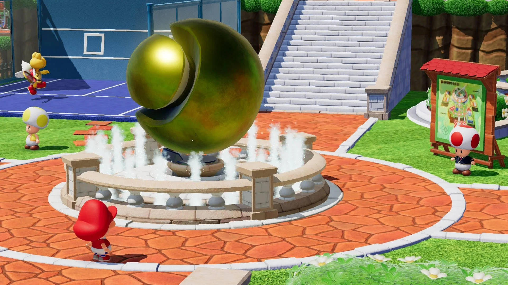 Mario Tennis : Fever est un jeu de tennis hyper soigné au niveau de la technique. L'ensemble est coloré, la direction artistique est cohérente avec l'univers Mario et comme vous l'avez sans doute compris on a donc dénoté aucun problème qui fait tâche, que cela soit en mode docké, ou en nomade. On pourrait évoquer quelques petits problèmes de lisibilité quand il y a un déchaînement des pouvoirs des raquettes frénétiques des deux côtés du terrain, mais c'est à peu près tout ce qui est critiquable. On a aimé pouvoir visiter quelques petits niveaux bien spécifiques pendant le mode aventure, ce qui apporte un peu plus de consistance que ce que nous avons habituellement dans un jeu de tennis. Il aurait été plus sympathique de la part de Nintendo de proposer un peu plus de neuf dans l'introduction des personnages lorsqu'ils arrivent sur le terrain. Beaucoup sont directement reprises de Mario Tennis : Aces. Oui, ce n'est pas très important, il est vrai, mais cela aurait été un point appréciable pour ceux qui les ont déjà vus pendant des centaines d'heures dans le précédent opus, même s'il est possible de les passer. Heureusement le nombre de personnages est assez relevé dans cet opus et ils sont tous parfaitement animés. Le mode aventure propose quelques cinématiques sublimes, avec une jolie mise en scène qu'il faut absolument souligner. Dommage qu'elles soient rares, mais elles ont quand même le mérite d'exister, ce qui est déjà une bonne chose en soi.