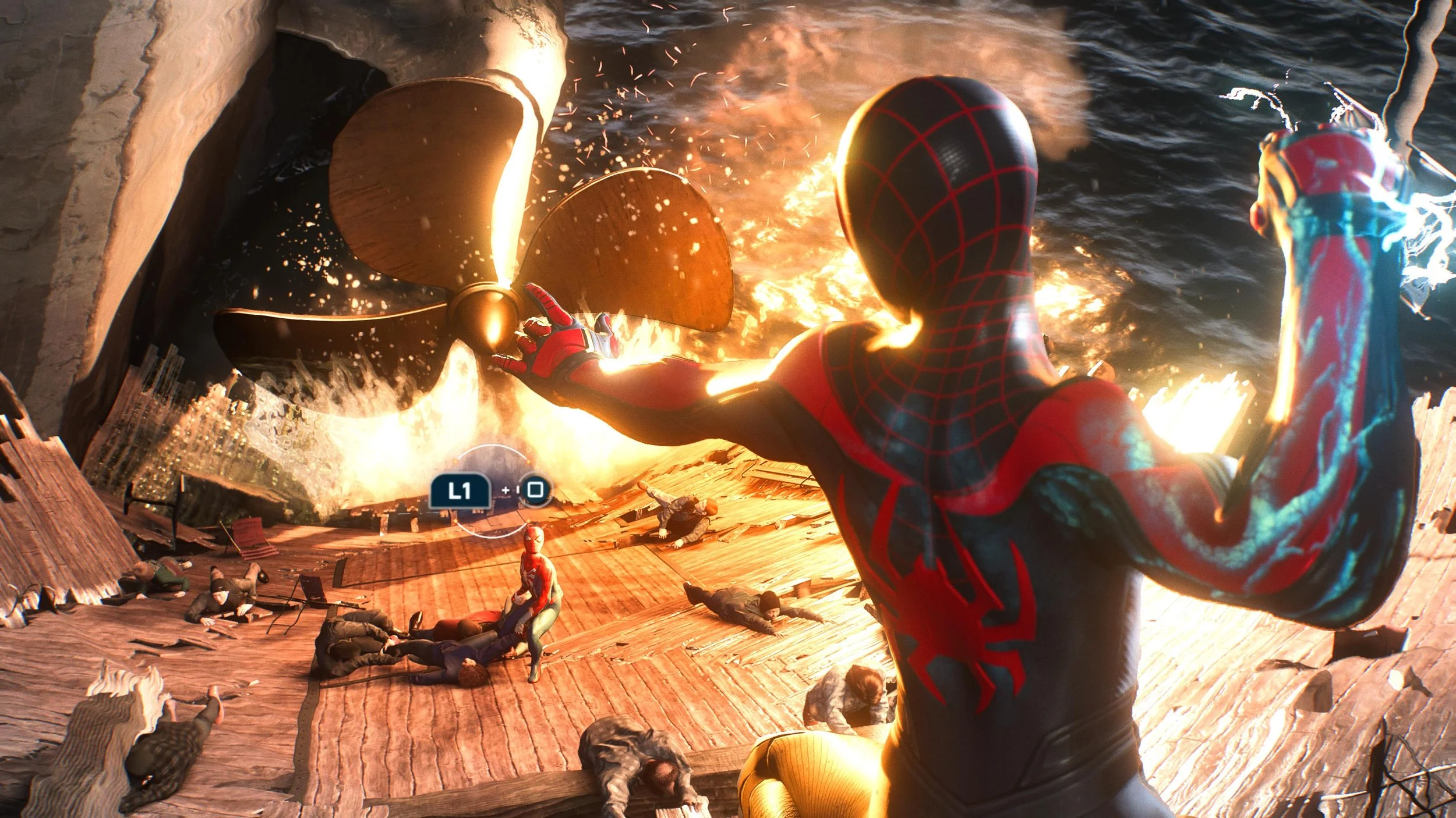 Il y a toujours quelques missions (heureusement annexes) de poursuite dans la ville qui ne sont pas top, il y a toujours quelques actions contextuelles qui ne s'activent pas du premier coup alors qu'elles le devraient et qui gâchent quelques secondes de jeu en créant une certaine frustration inutile, il y a encore des vagues d'ennemis un peu trop abusées que l'on pourrait atténuer en plaçant des ennemis plus intéressant à éliminer, mais mis-à-part cela, on prend un grand plaisir à parcourir toute l'aventure et à envoyer des toiles dans la face des méchants. Placarder des tartes dans la figure des ennemis grâce au style de combat très dynamique des deux héros n'a jamais été aussi plaisant dans un jeu Spider-Man, parcourir la ville est encore plus fun que l'on se balance de toile en toile ou que l'on utilise les ailes pour planer et traverser la ville d'un côté à l'autre. On a aussi noté pour finir, qu'ils ont grandement amélioré l'infiltration, qui était un des points les plus faibles des jeux précédents, grâce au filin de toile qui permet de créer des toiles pour pouvoir se déplacer en hauteur. Bien entendu l'IA n'est pas encore parfaite pour ces passages, mais on dénote une certaine amélioration dans l'ensemble et on utilise bien plus volontiers l'infiltration pour éliminer les ennemis d'un coup.