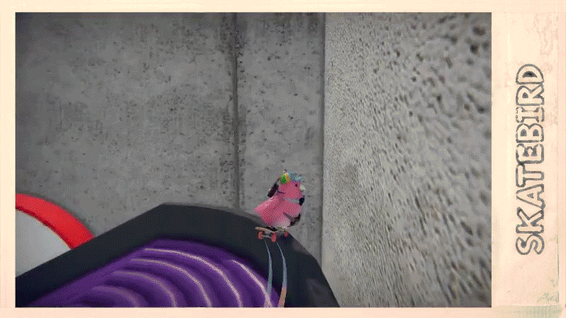 SkateBIRD n’est PAS une simulation de SKATE comme un Tony Hawk par exemple, il est beaucoup plus tolérant. La preuve, avec assez d’élan on peut glisser sur une corde qui monte… si, si. Le tout est de capter les mécaniques de base et de franchement pas hésiter à tomber, le jeu propose un système de point de respawn très pratique (Bien que je n’ai jamais réussi à l’utiliser correctement). Sérieux, allez-y, lancez-vous, vous parviendrez peut-être à voler…Ou pas.